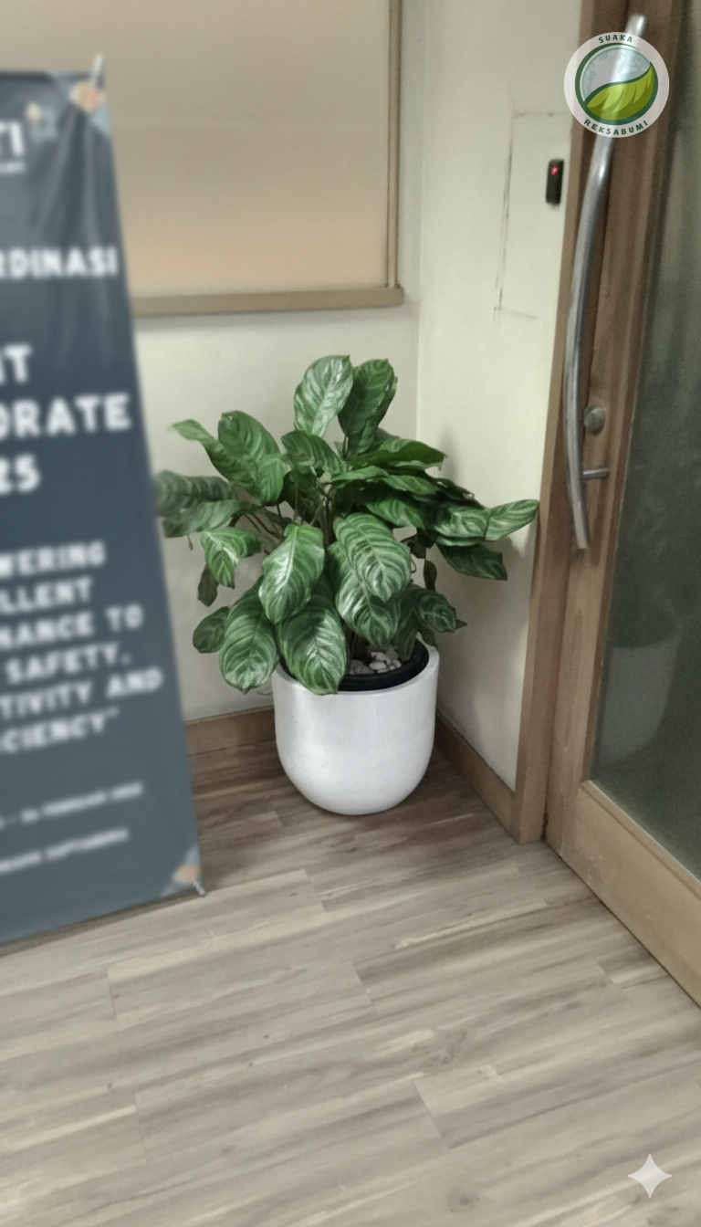 Aglonema Silver adalah salah satu tanaman hias indoor yang populer untuk dekorasi ruangan, termasuk area kantor. Tanaman ini memiliki daun lebar berbentuk oval dengan perpaduan warna hijau tua dan corak perak yang kontras, sehingga memberi kesan elegan, modern, dan mewah. Tampilan daunnya yang mengilap membuat ruangan terlihat lebih segar dan rapi. Selain mempercantik interior, Aglonema Silver juga dikenal cukup mudah dirawat dan cocok untuk indoor dengan cahaya tidak langsung. Tanaman ini pas ditempatkan di meja kerja, dekat jendela, maupun area resepsionis.